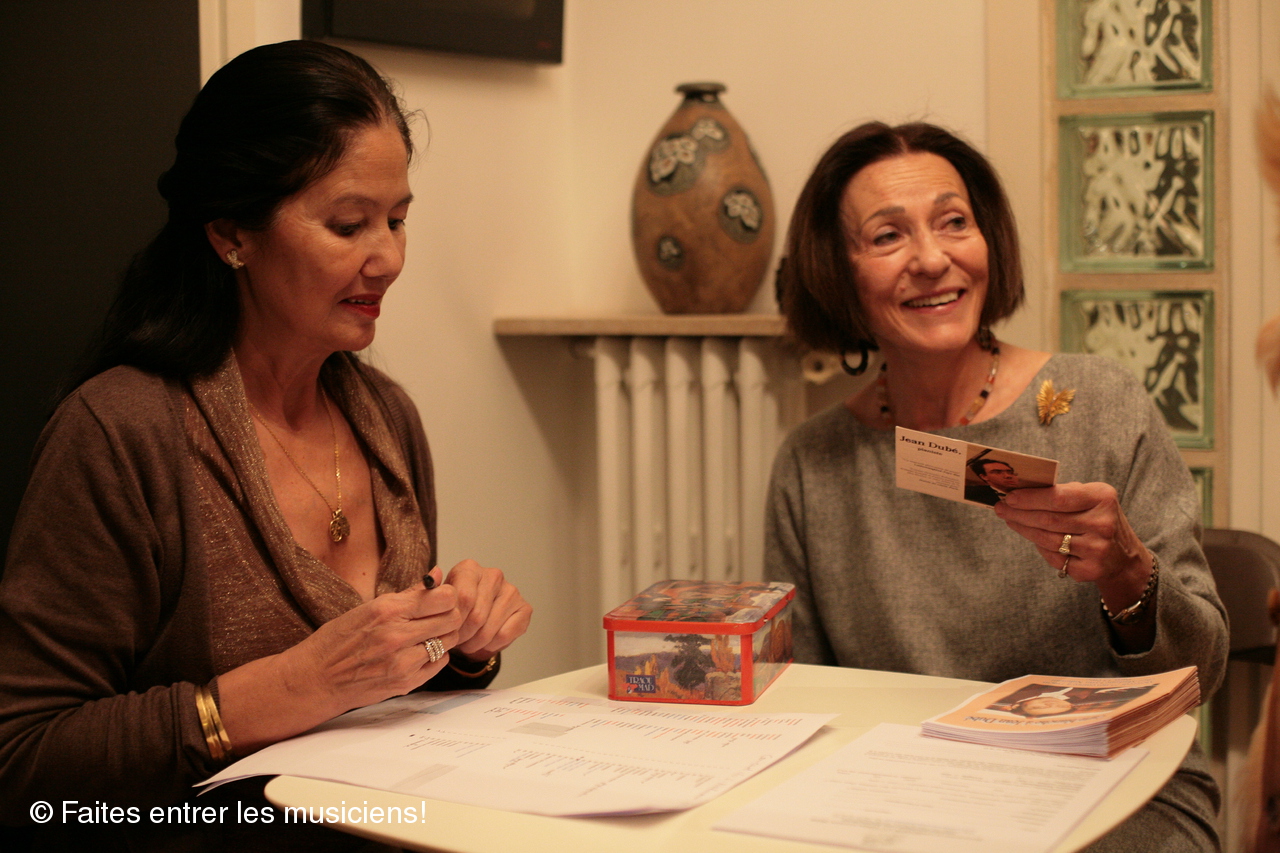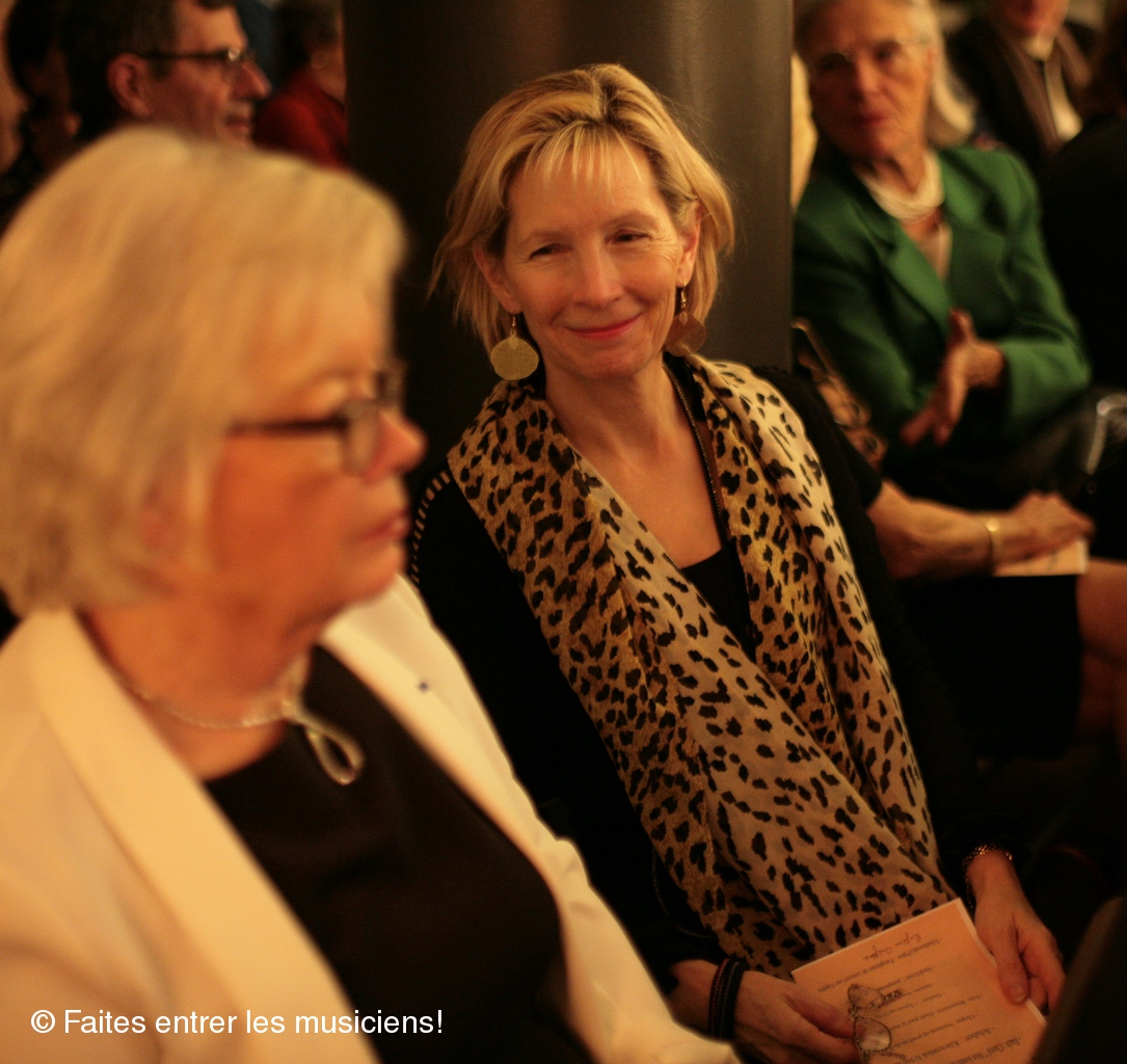 Avant le concert, la présidente Catherine Galitzine relit la bio impressionnante de l'artiste Jean Dubé.