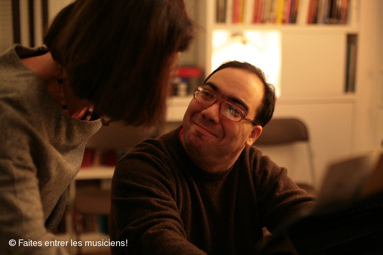 Un autre musicien se penche sur l'épaule de l'artiste pour apprécier la difficulté des pièces...