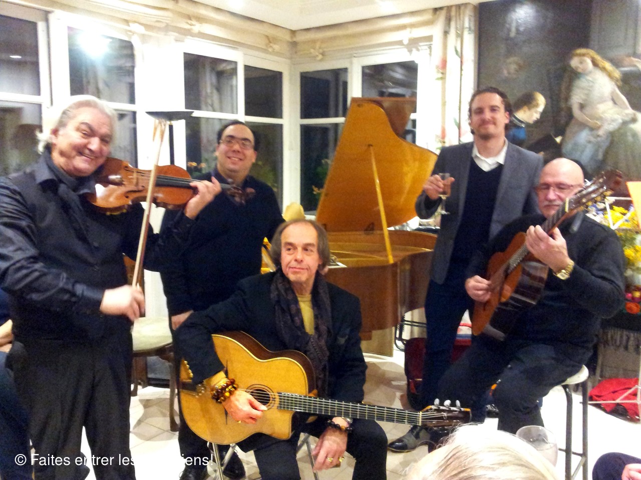 Nicole Rivière (piano), Thierry Samouelian (violon), Edwige Morgen (piano et voix), Jean Dubé (piano), Gabriel Drossart (violon), Boulou Ferré (guitare) ainsi que le Maestro ...Romano!